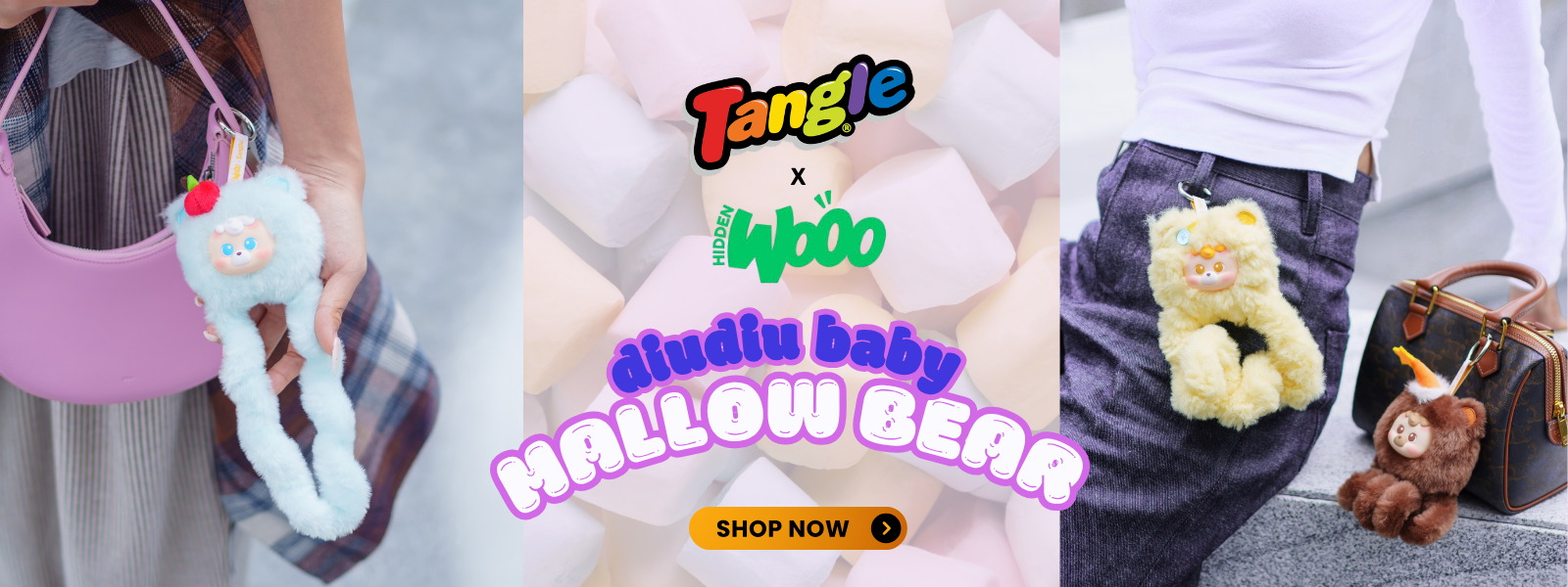Meet the Tangle® x HiddenWooo collaboration — a playful series of collectible plush fidget toys that blend Tangle’s signature twisty, sensory design with the beloved HiddenWooo character, Diu Diu Baby.